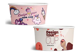 For the highest quality sustainable materials and printing quality explore our range of certified recyclable, compostable or regular paper cups and paper ice cream cups to promote your brand. Ask us about easy artwork and design service options!